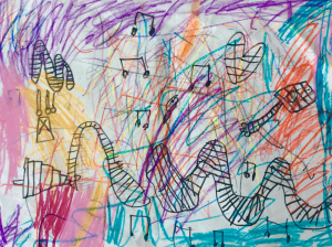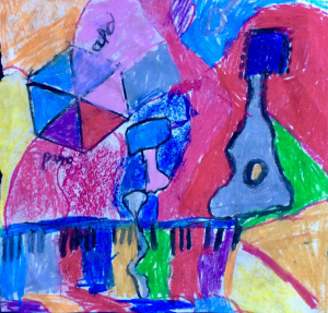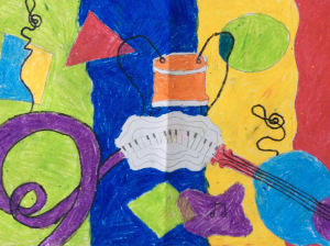 Today the children developed a wide range of art and design techniques in using line, shape and colour in the context of making artwork inspired by music.