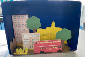 The picture here shows our wonderful De Beauvoir Primary School painted by Y6 children there who wanted to express their strong collective identity as pupils of the school. Other children created self-portraits in a range of styles, such as pointillism, or inspired by artists such as Frida Kahlo, or by books they had read, such as Wonder. Please take the opportunity to visit the work if you can.